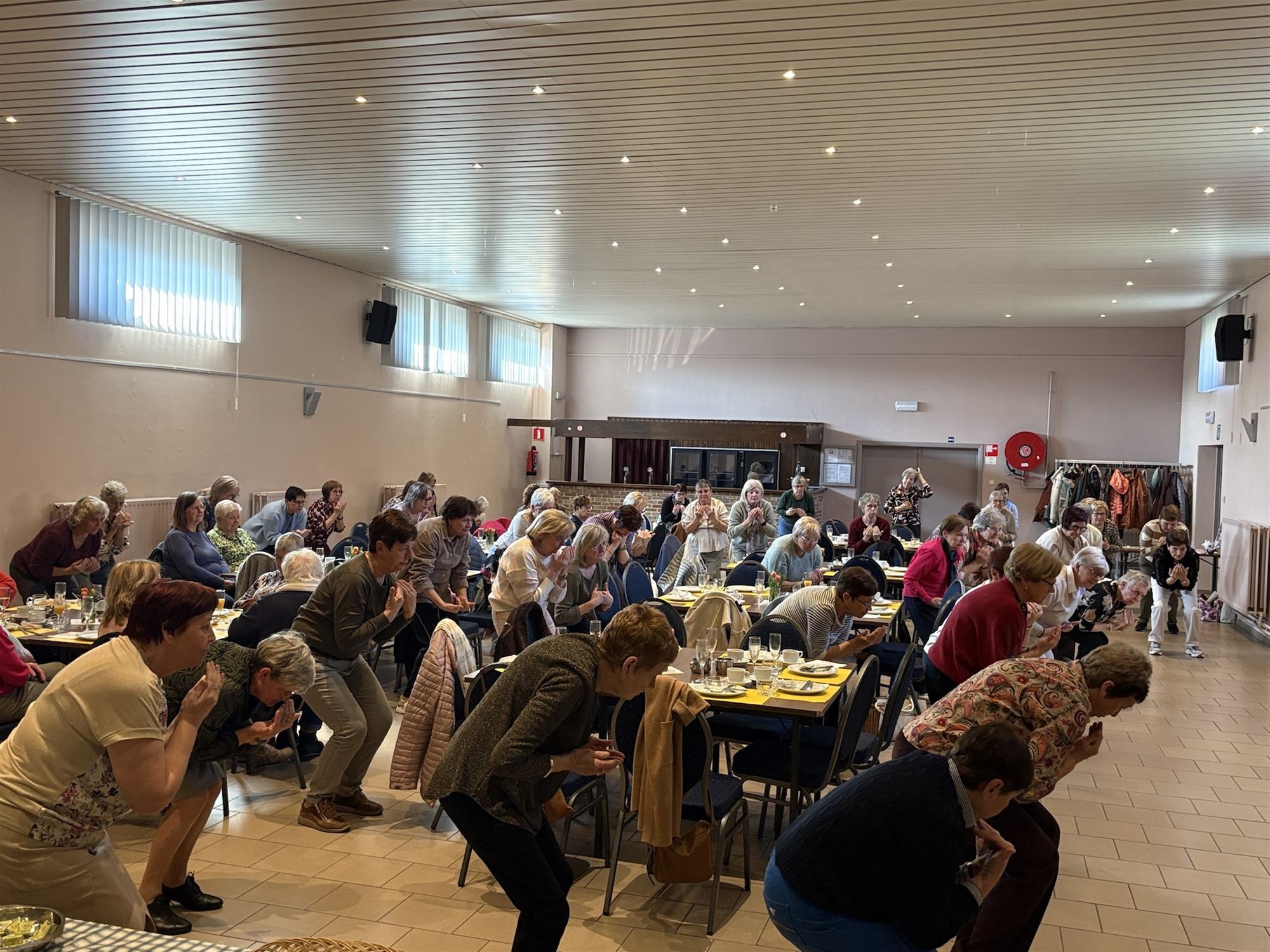 Qigong. Het bracht ons lichaam en geest in balans en liet de energie in je lichaam zo vrij en evenwichtig mogelijk stromen. Qi = energie en gong = oefening dus letterlijk energie oefeningen. Vooral de nadruk leggen om goed te ademen via de buik tijdens eenvoudige bewegingen. Zo krijgen de longen veel meer lucht binnen dan dat we gewoon ademen. We beginnen met het middenrif en dat is de spier onder de longen. Glimlach, strek de armen, duw ze naar boven en de zuurstof gaat tot de handpalmen, we draaien ze en ademen rustig uit terwijl we de armen laten zakken en lichtjes door onze knieën gaan. Bij Chinese bewegingsleer neem je bewuster tijd voor jezelf en voorzie je heel het lichaam van extra zuurstof. Het is rustgevend, ontspannend en zelf helend. Een fijne, gezellige voormiddag die bij velen in de smaak viel", vertelt Greta Cuppens.