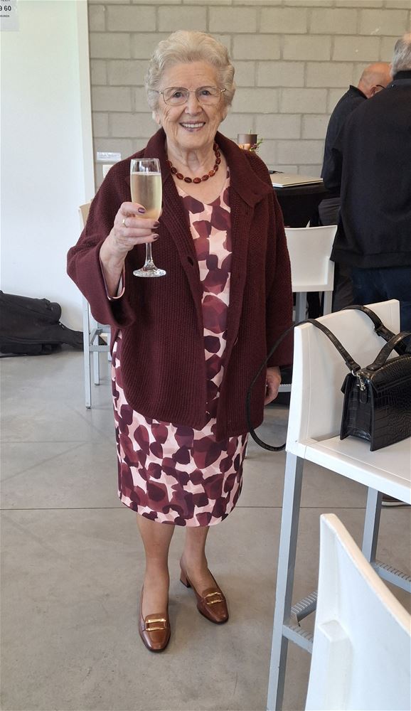 Haar ogen zijn niet meer zo goed maar met haar wilskracht en doorzettingsvermogen leest ze nog dagelijks de krant en vult ze nog heel wat cijfer- en lettercodes in. Haar leuze is: “Ik heb tijd en moeilijk gaat ook”.