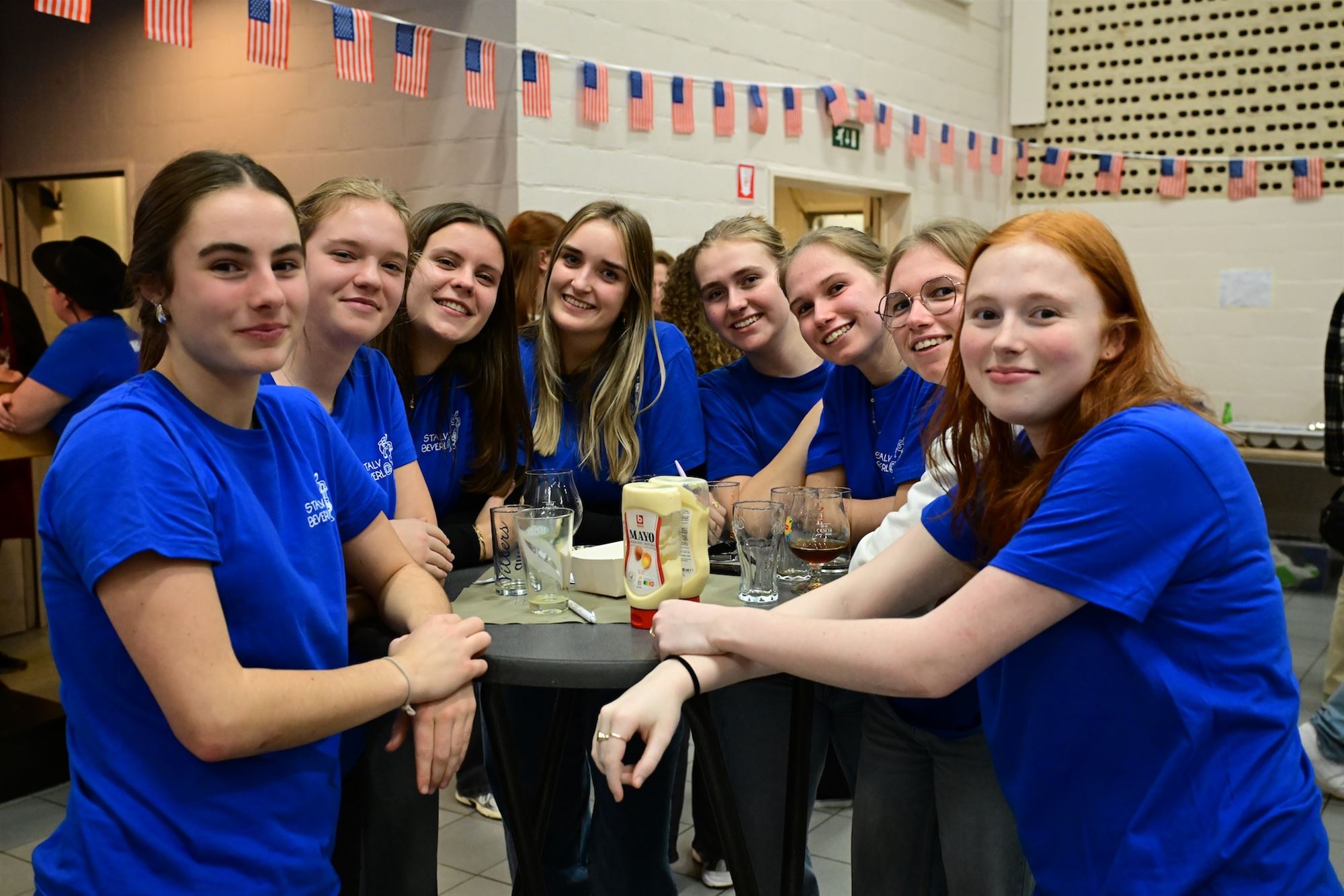 één grote familie is dat merkte je meteen als je de sporthal binnenstapte bij de Amerikaanse eetdag. 750 eters werden met heel enthousiaste in de watten gelegd. Het werd zo weer een gezellige drukke dag en vooral een heel lekkere.