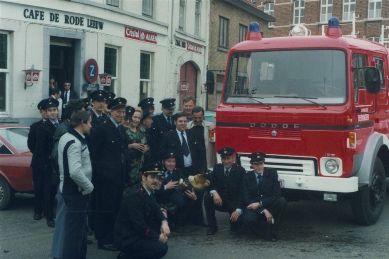 Uit het archief van de Vriendenkring van de Beringse Brandweer nog deze leuke groepsfoto voor café De Rode Leeuw in het centrum van Beringen.
