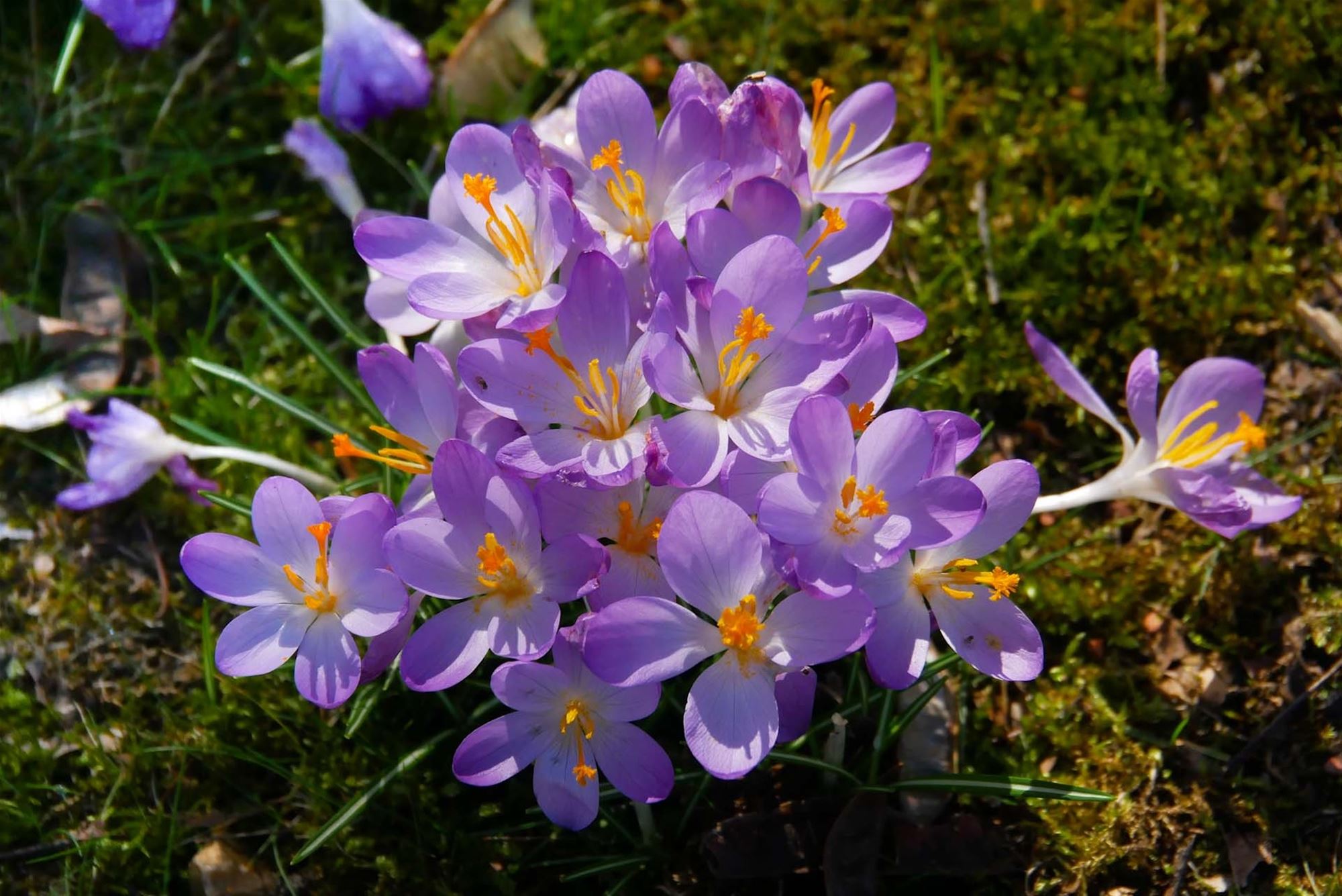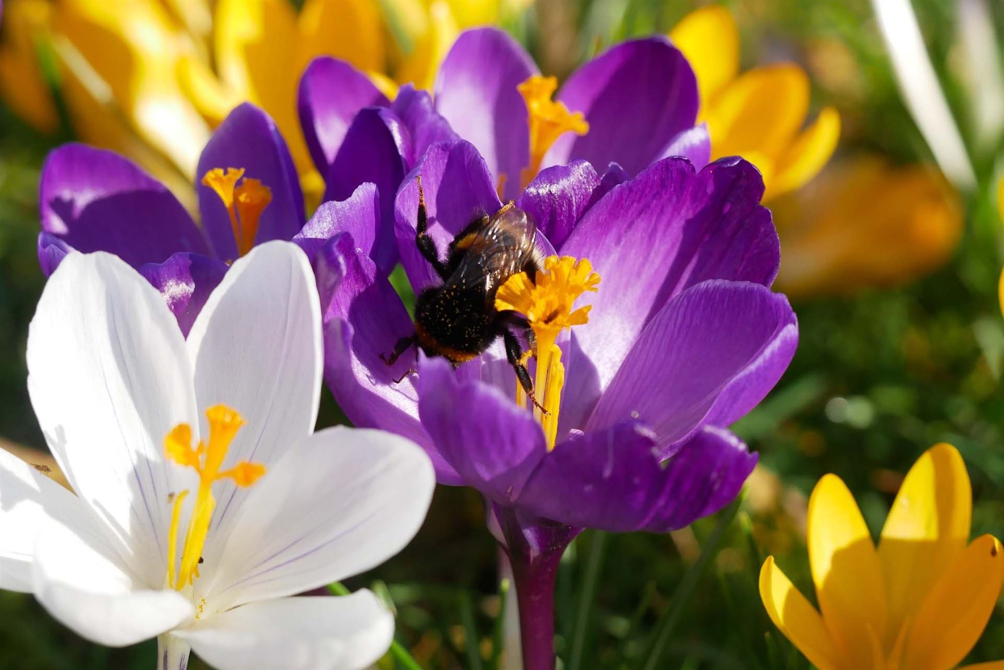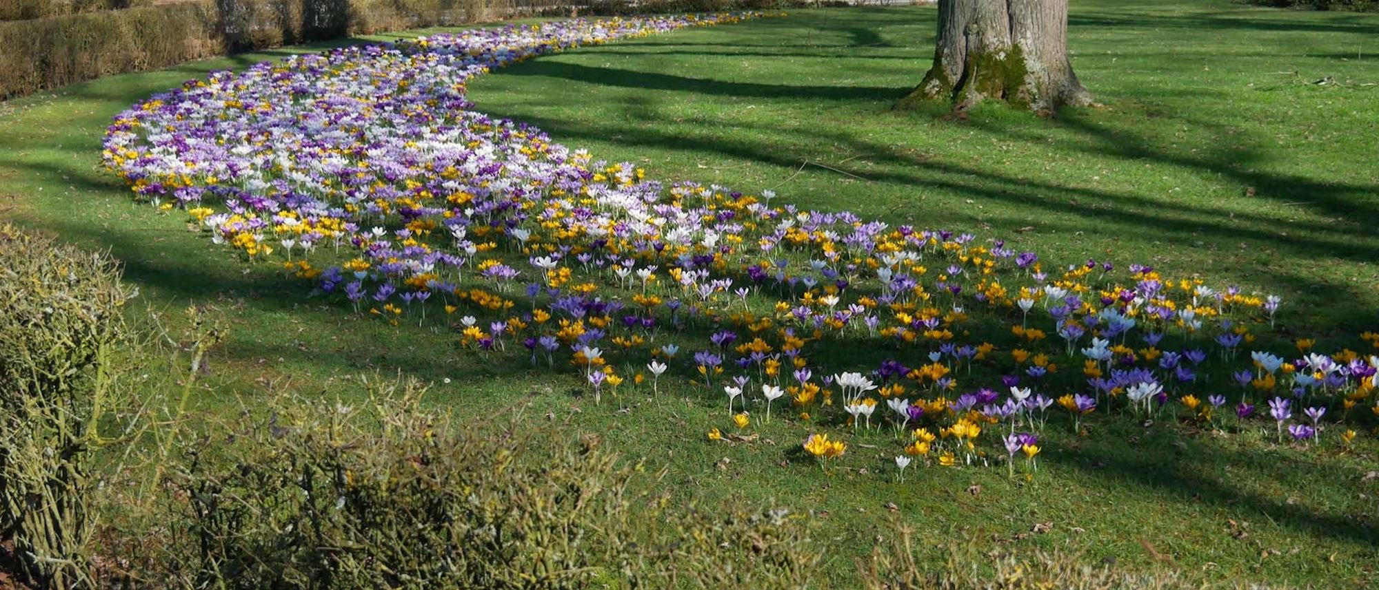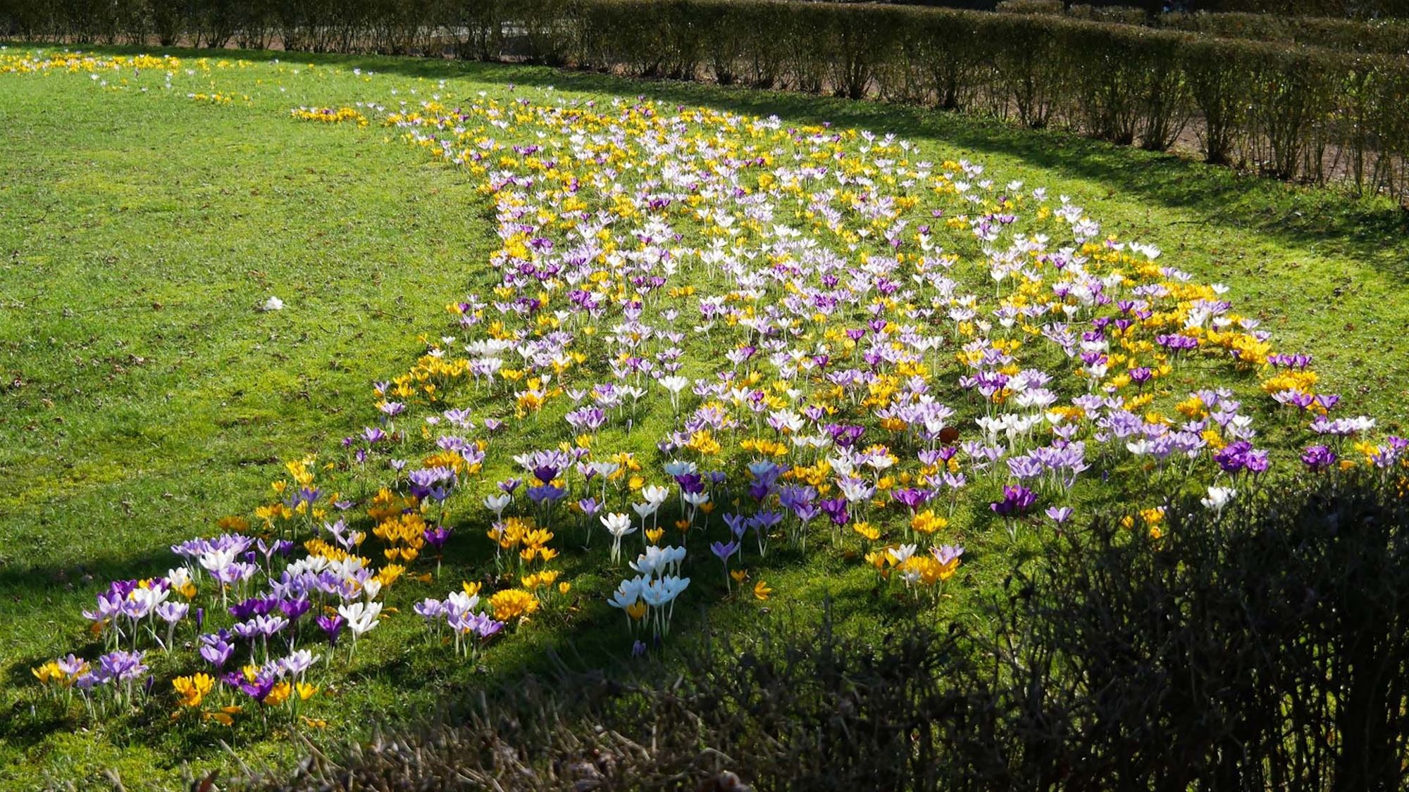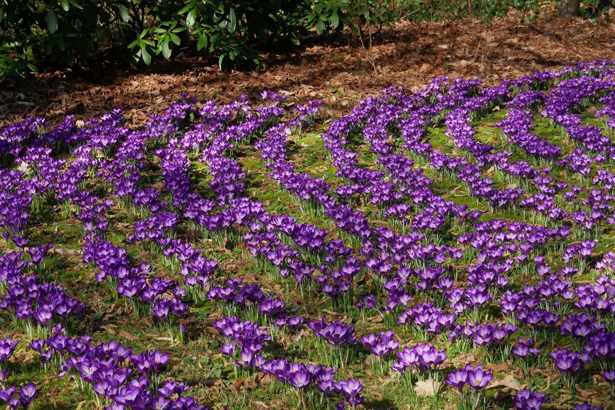 Het park van de directeur kleurt momenteel paars, de zonnige dag gisteren liet de bloemen weelderig bloeien en ook de bijtjes genoten van de eerste echte lentedag.