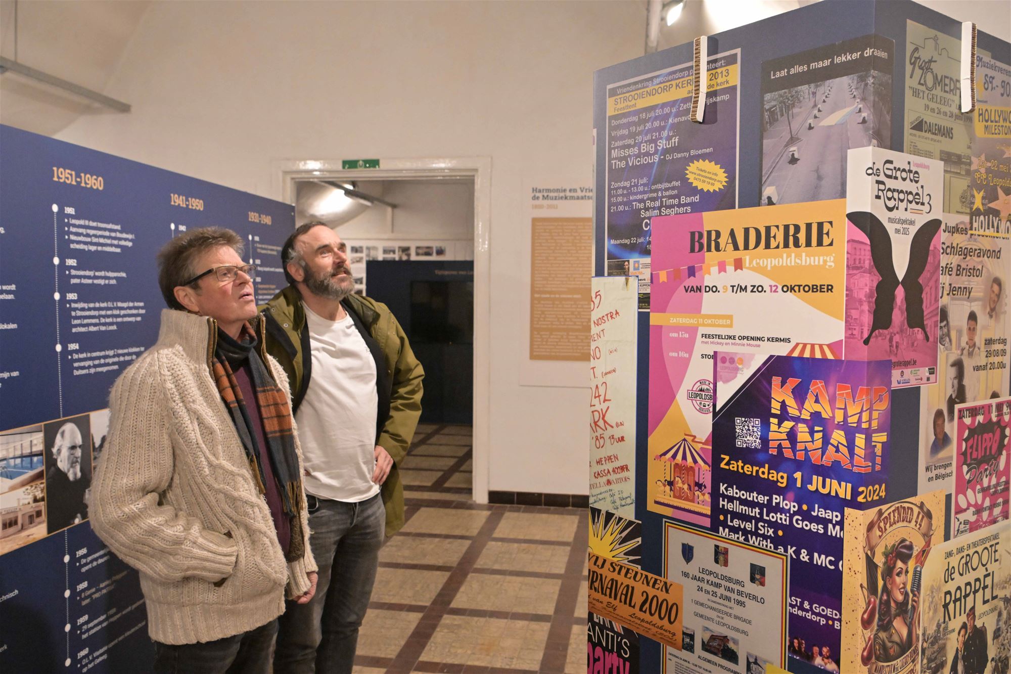 Bezoekers wandelen er door een tijdslijn die de hele geschiedenis van onze gemeente bestrijkt. Foto’s, objecten, getuigenissen en multimediale presentaties vertellen het verhaal van Leopoldsburg en Heppen. QR-codes geven toegang tot extra materiaal, zoals muziek- en videofragmenten en persoonlijke verhalen, waardoor de expo een echte beleving wordt. Erfgoed Leopoldsburg, Heemkunde Heppen en het Museum Kamp van Beverlo.