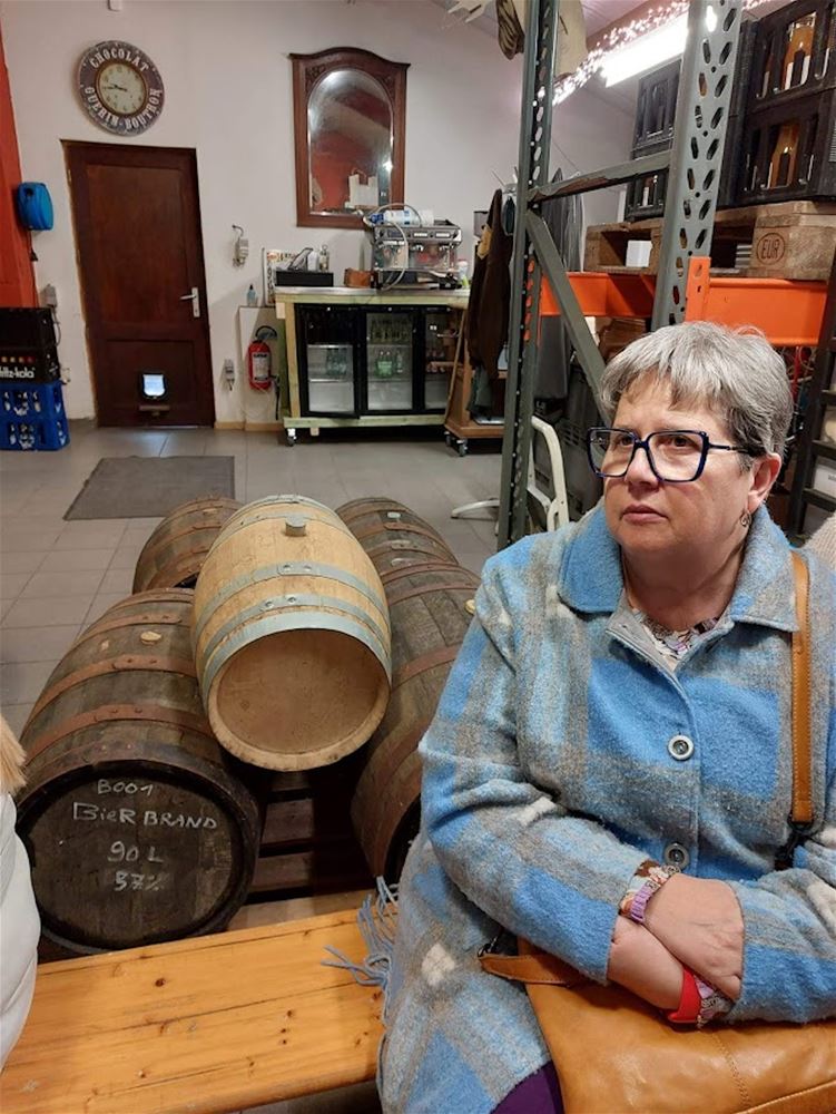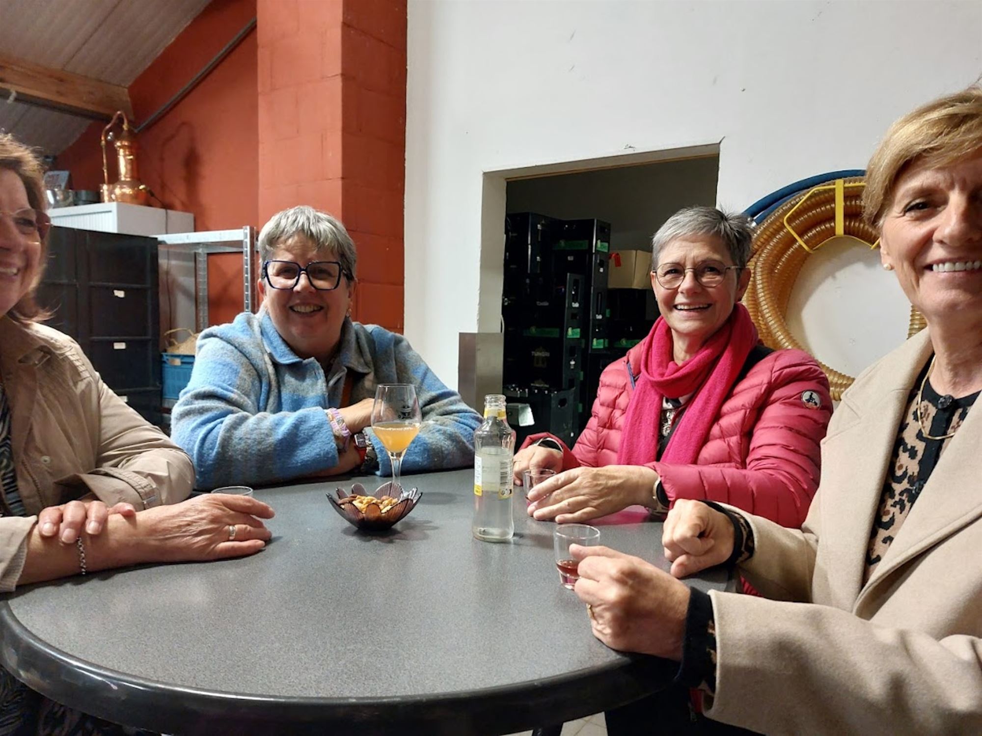 In de ruime boomgaard vol fruitbomen vertelde gastheer Jeroen de geschiedenis van het bedrijf vanaf het prille begin in 1993 . Tot voor kort werd er ook bier gebrouwen, maar daar is hij nu mee gestopt. Momenteel worden er o.a. whisky, gin, calvados, appelstook en lekker appelsap geproduceerd.. Er wordt gebruik gemaakt van het beste fruit en graan uit de regio.