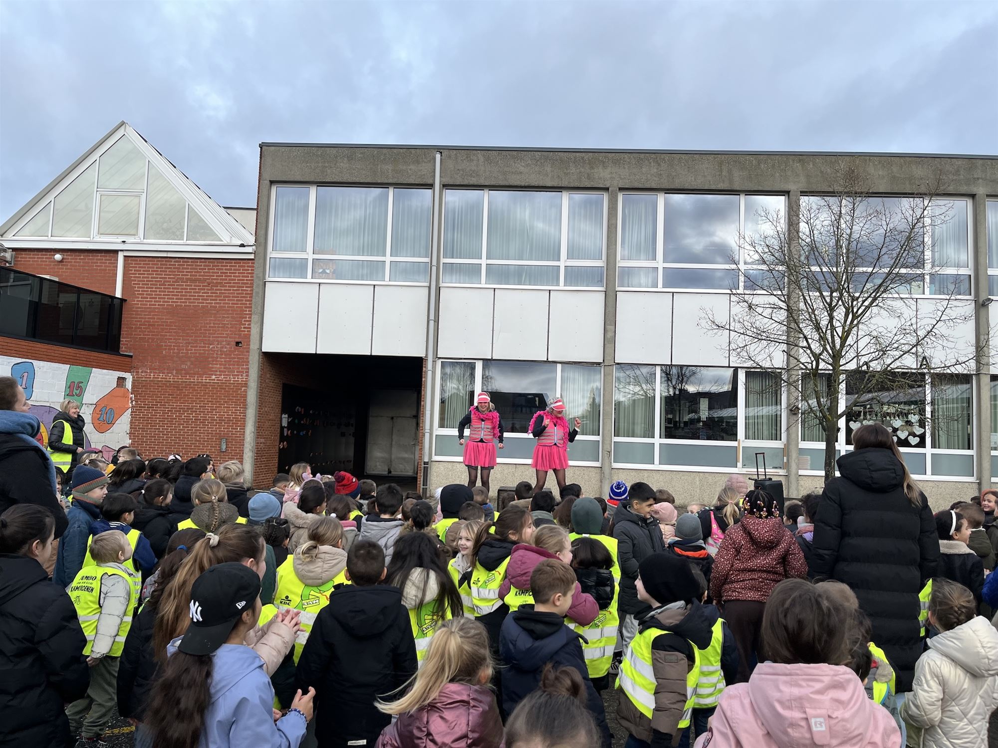 hun engagement. "We vragen om de gekregen fluohesjes goed te blijven dragen voor de veiligheid van onze kinderen", aldus het oudercomité.