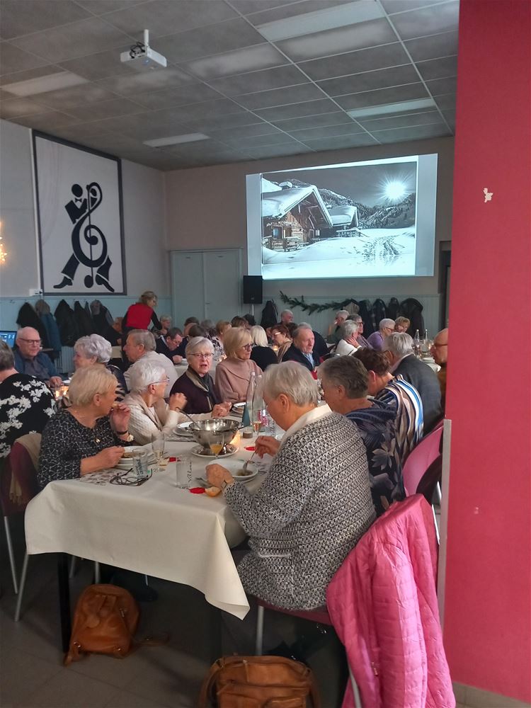 Okra Beringen-Noord genoten in De Schans van een gezellige namiddag. Na een korte kerstbezinning smaakte het driegangenmenuutje en de sfeerbeelden hielden de kerstsfeer vast tot het vrouwenzangkoor