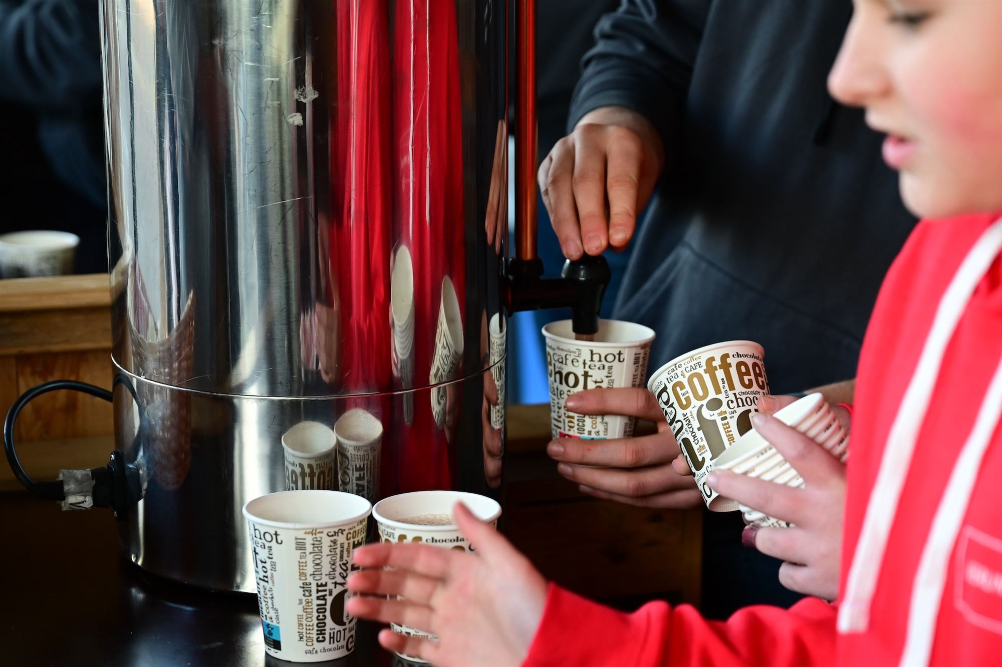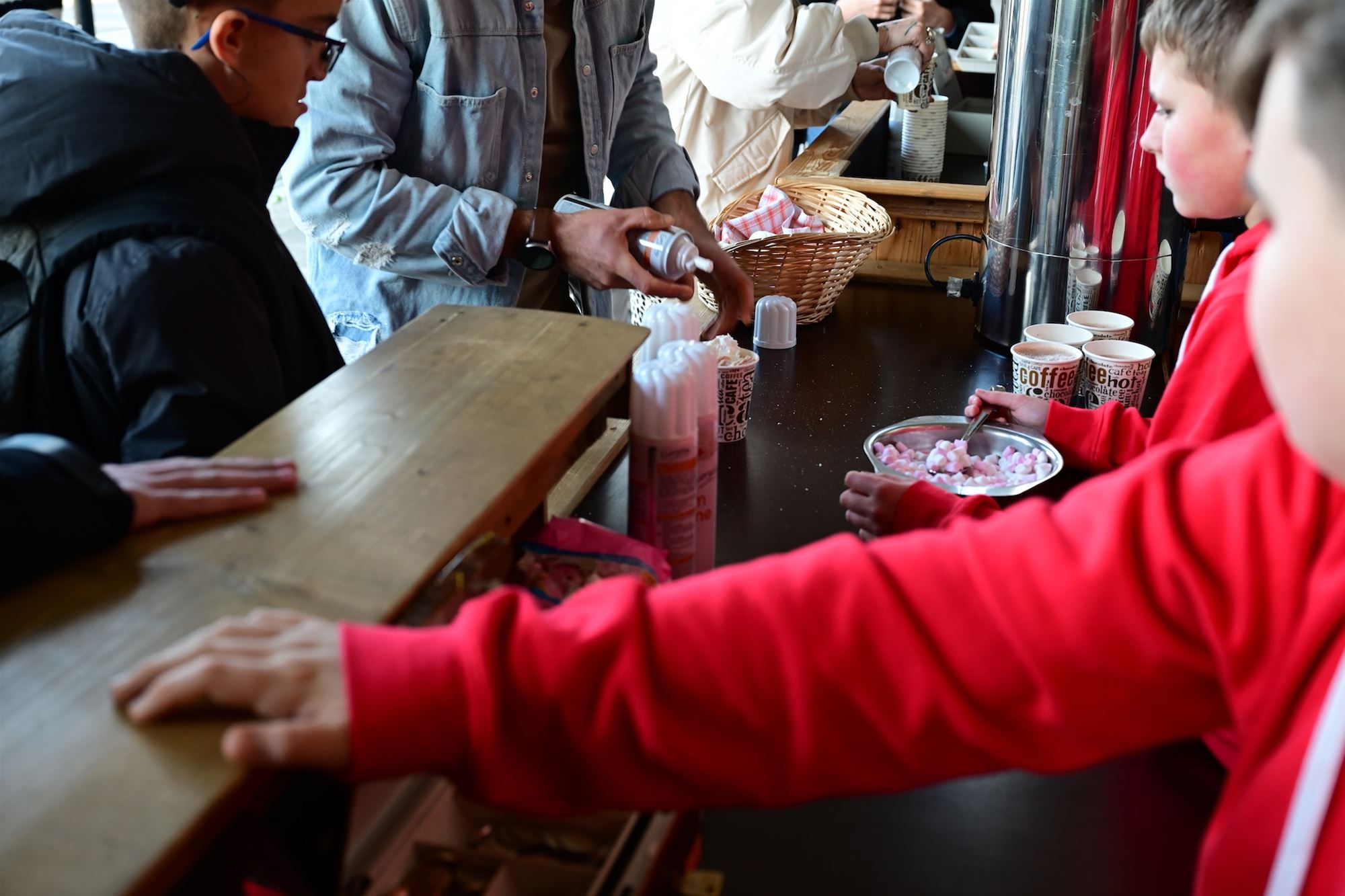 Daarnaast organiseren we ook verkoopstanden om allerlei activiteiten en sport- en spelmateriaal voor op de speelplaats te financieren. Recent was er de verkoop van warme chocomelk.