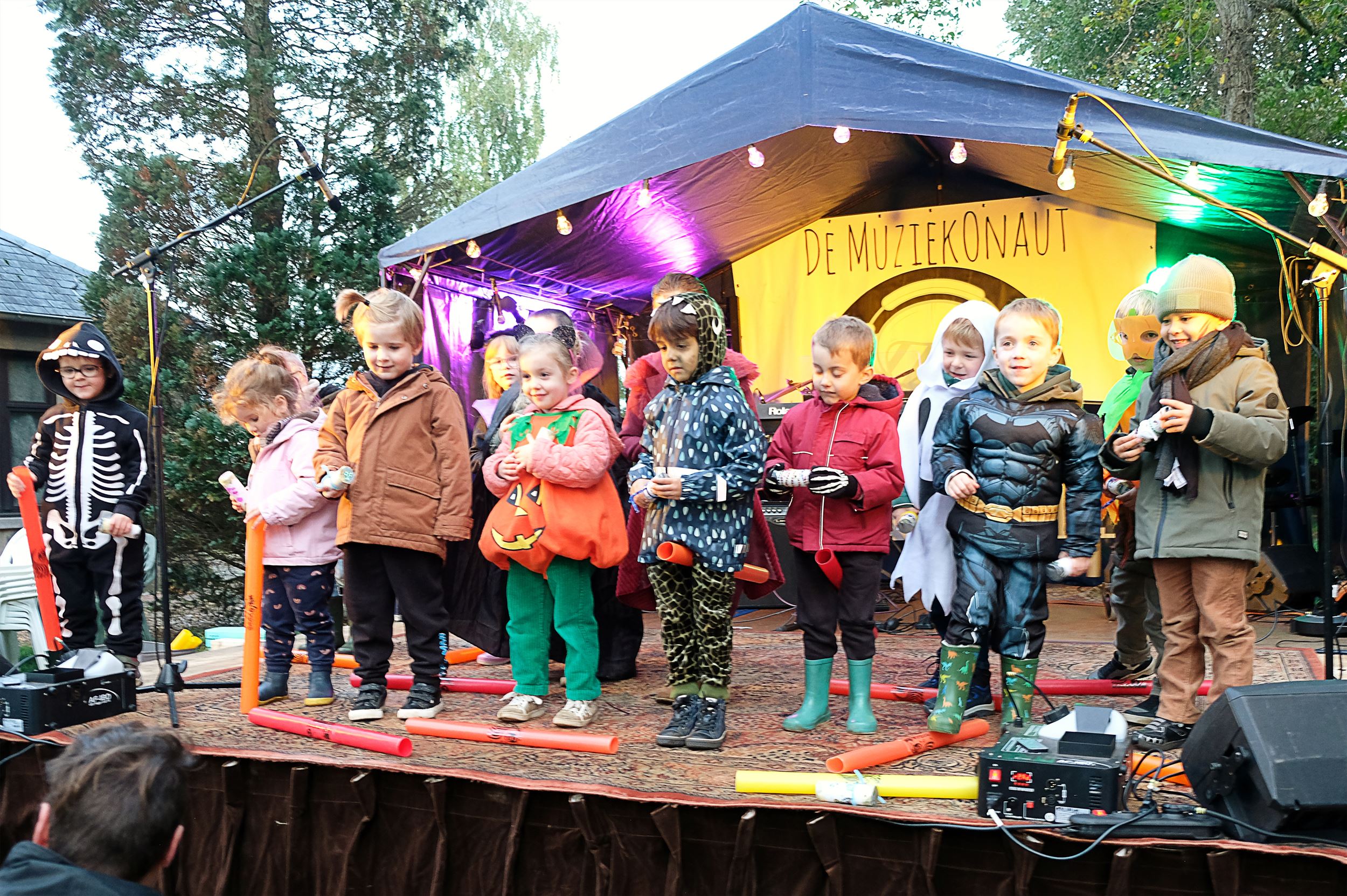 De kinderen van het muzikaal ontwaken en muziekinitiatie openden het evenement met een tof optreden, ze zongen en speelden liedjes over spoken, skeletten en drumden mee op de muziek van The Addams Family.