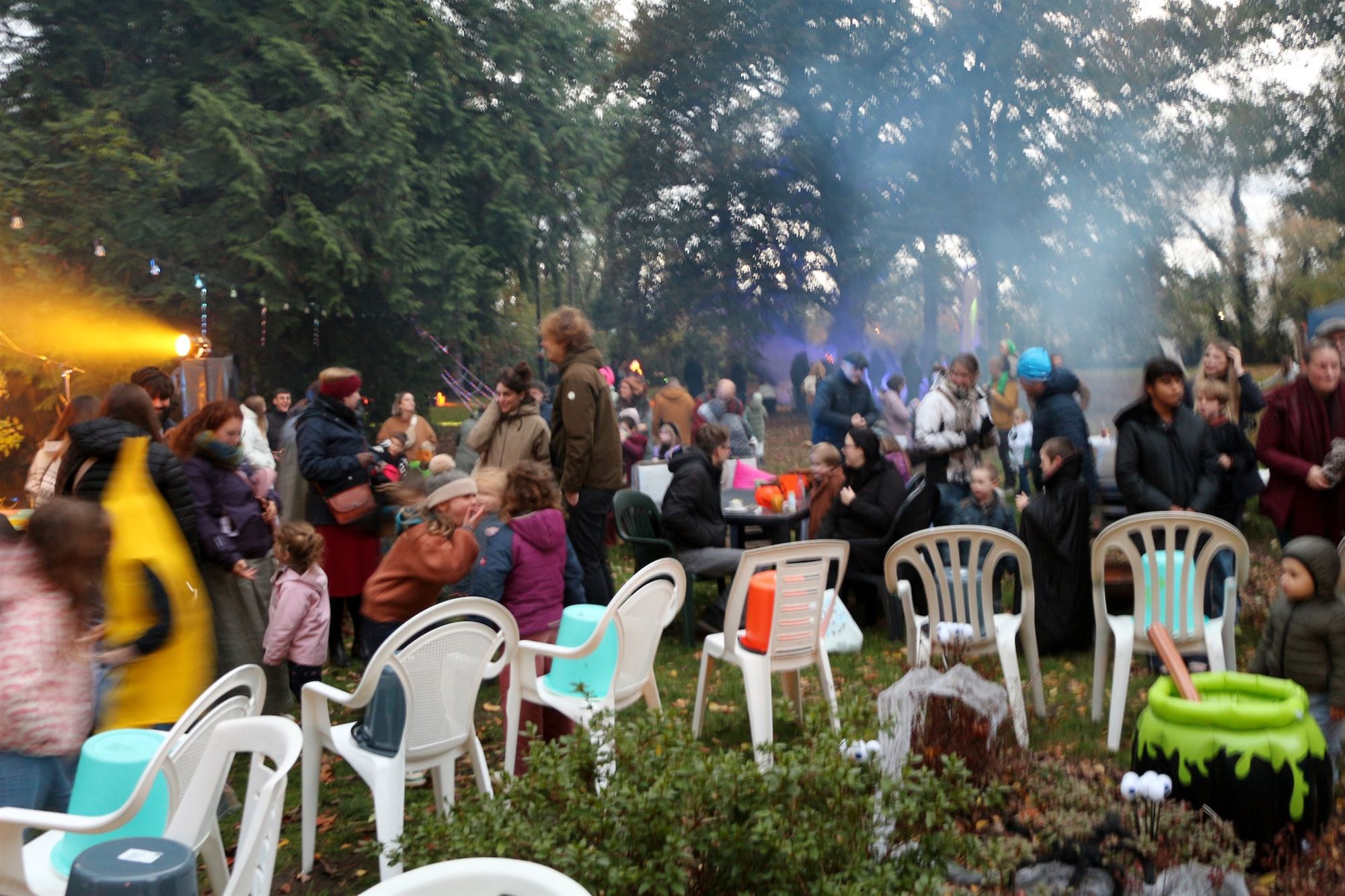 Tijdens de wandeling kon je muzikale opdrachten doen met aan het eind een fijne attentie. Als je dan ook nog een gokje waagde hoeveel de pompoen woog, kon je een van de leuke prijzen winnen. Voor de echte durvers was er dit jaar een extra eng gedeelte voorzien, daarvoor moest je naar ‘het donkere huisje’, opgesteld op een afgelegen plekje in de tuin.