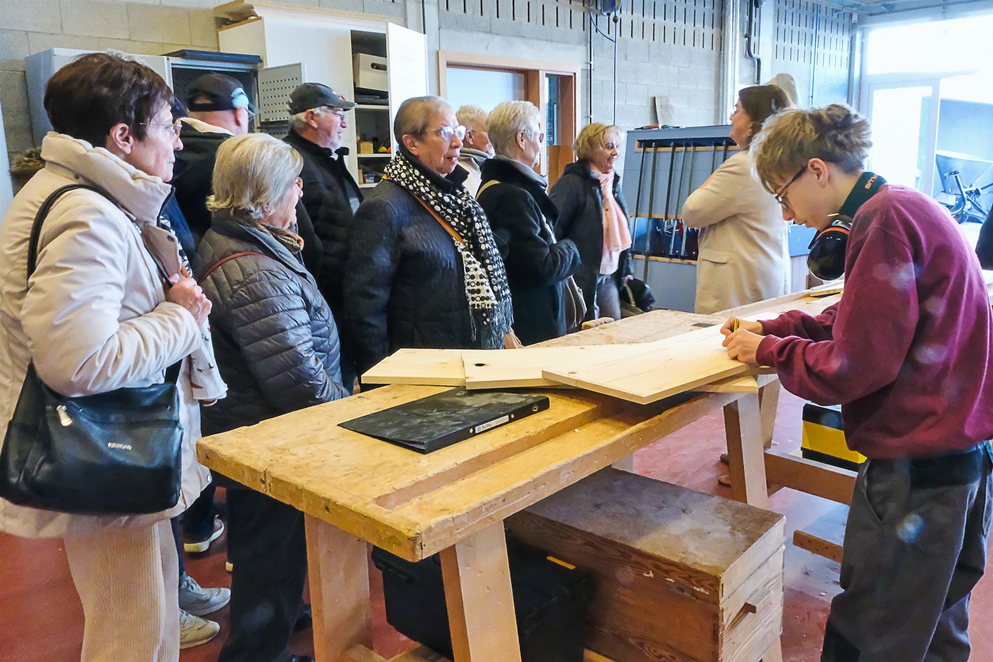 Vervolgens volgde een boeiende rondleiding. Grote indruk maakte de hypermoderne houtafdeling, waar enthousiaste leerlingen en leerkrachten de leden lieten kennismaken met de nieuwste technieken.