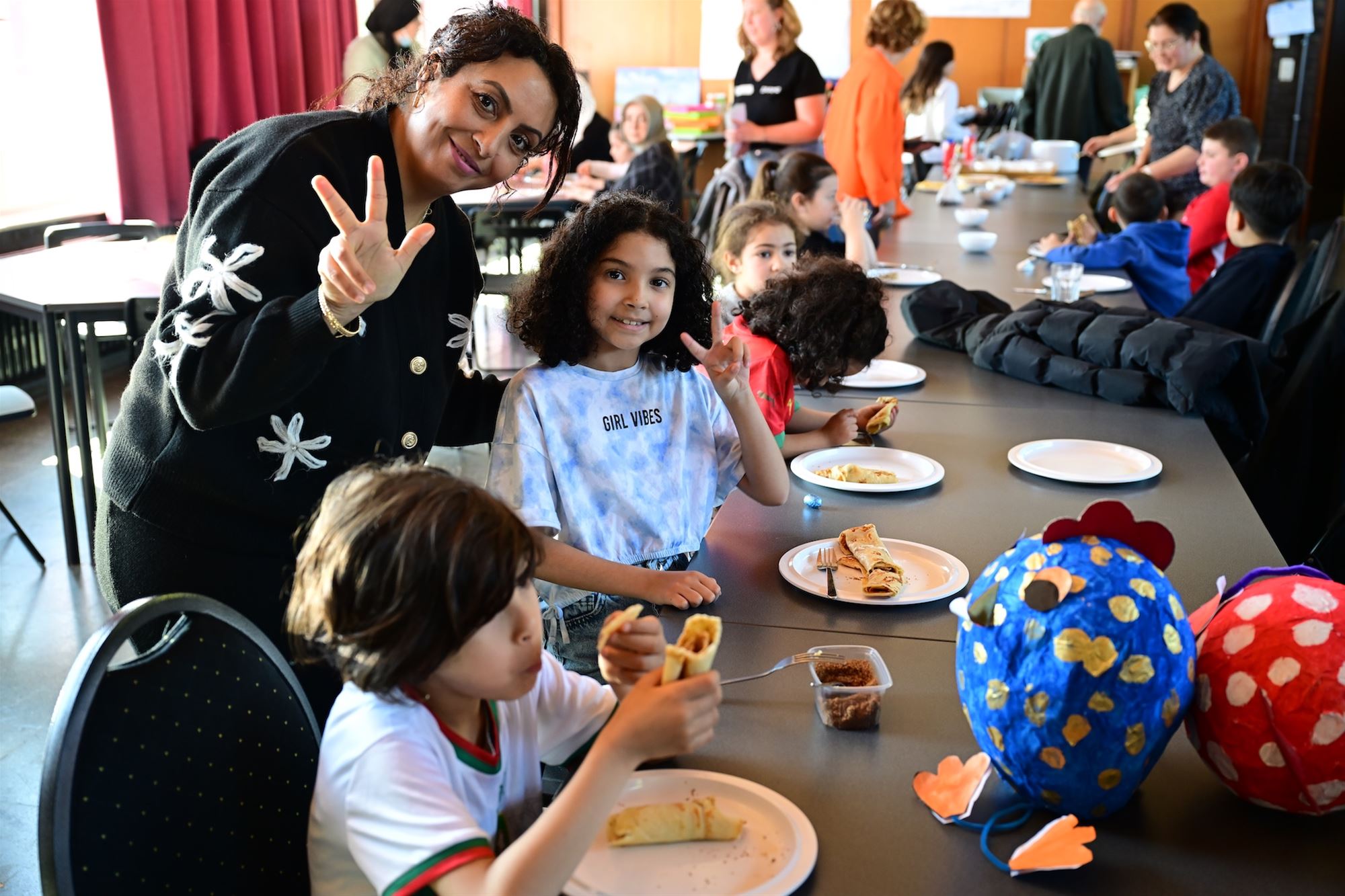 kregen vandaag nog een mooi paasgeschenk. Eerst kregen ze lekkere pannenkoeken en dat lagen er paaseitjes verstopt in de buurt. Het werd zo weer een fijne namiddag voor en door de buurt.