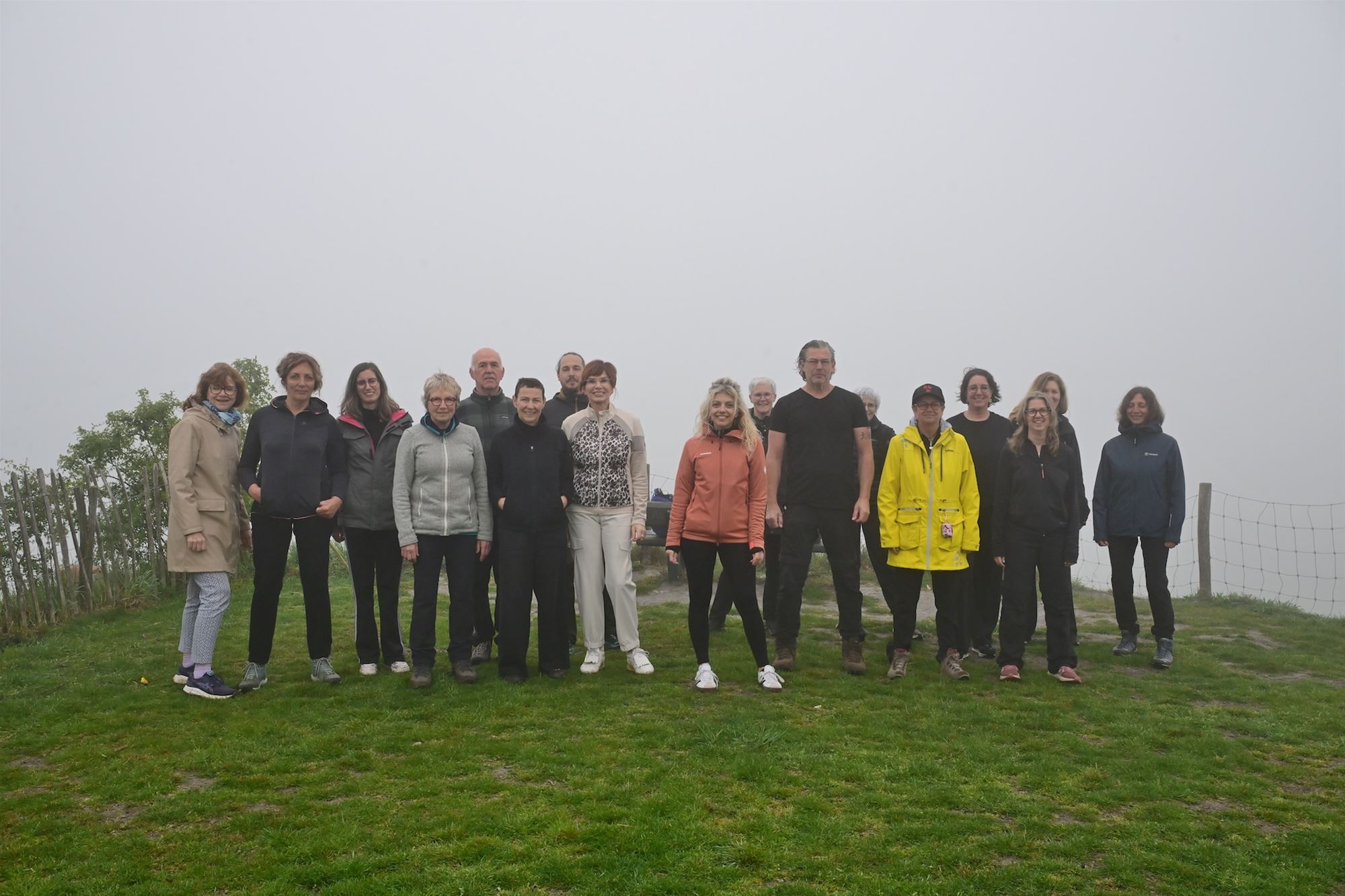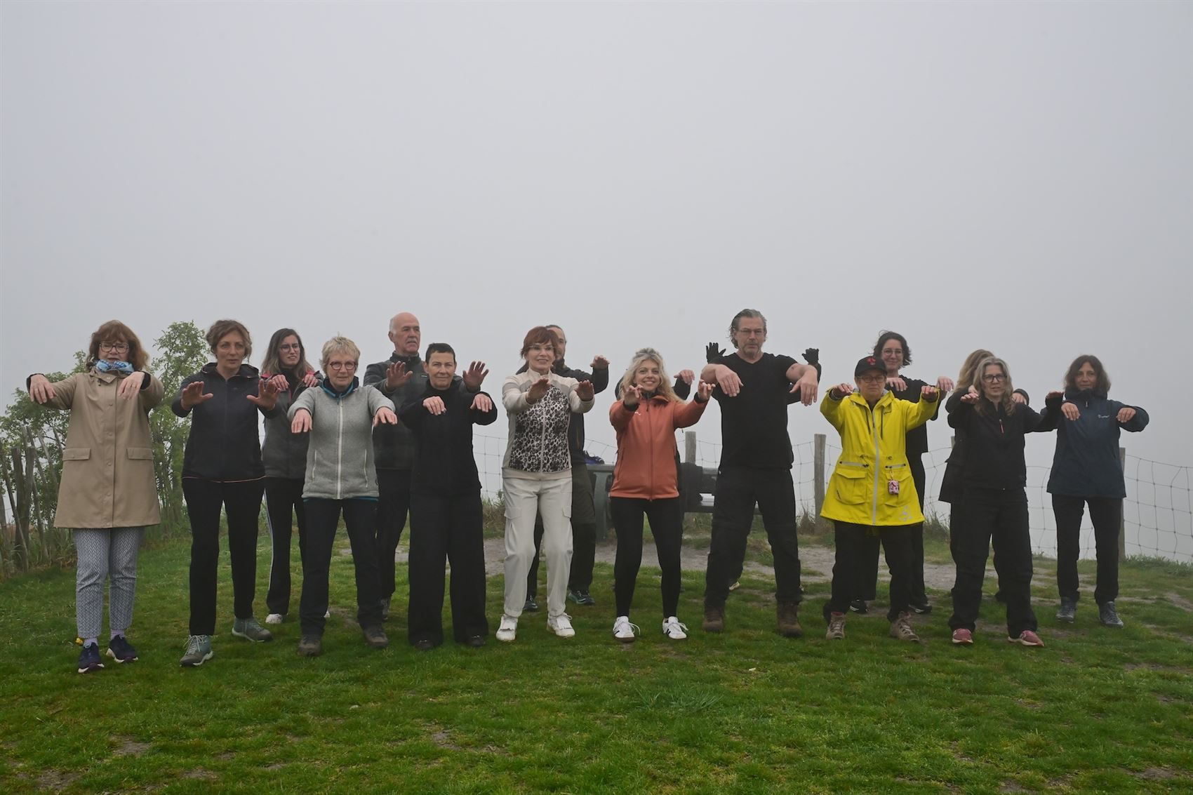 mijnterril van Beringen op. Na een wandeling deden ze daar een reeks tai chi oefeningen. De zon was niet van de partij maar de mist hulde het geheel in een speciale sfeer. Ze maakten daarmee deel uit van de wave, die op hetzelfde moment over zowat heel de wereld werd gevormd door tai chi beoefenaars. Alsof er één groot zen-moment over de aardbol waaide …