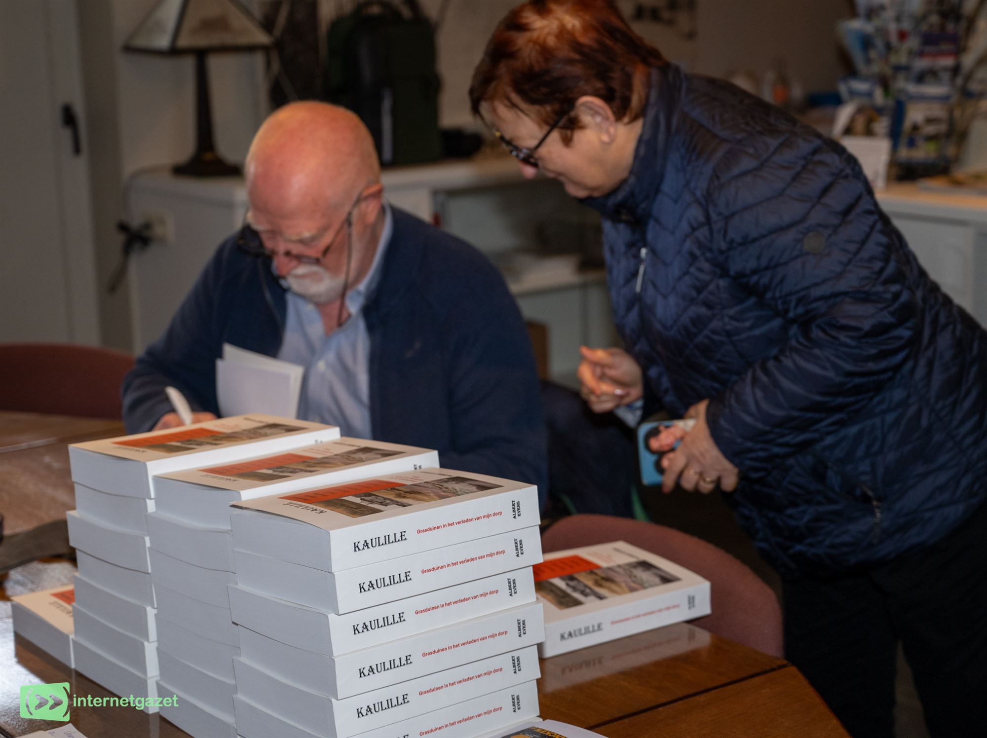 In het Molenhuis in Kaulille liep het maandag storm voor het lijvige naslagwerk “Kaulille, grasduinen in het verleden van mijn dorp”. Auteur Albert Evens zat er tussen 10 en 14.30 uur te signeren, en het werd een komen en gaan van Kaulillenaren – maar ook heel wat geïnteresseerden van buiten het dorp. Opvallend: velen gingen met méér dan één exemplaar naar huis. Wij spraken met Albert tussen het signeren door.
