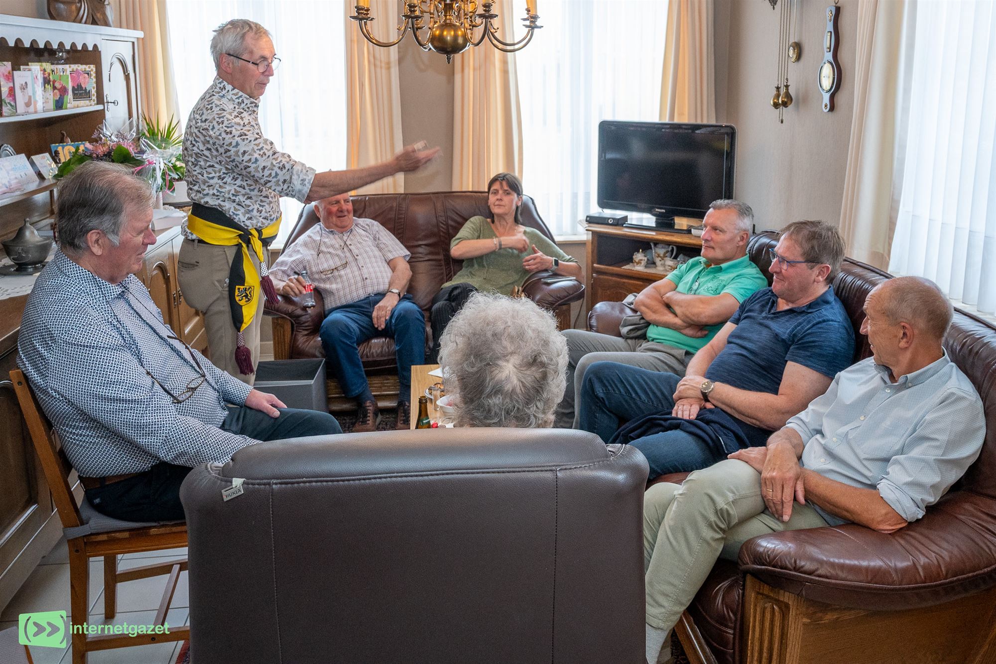 De burgemeester kon er helaas niet bij zijn, en vermits op de lijst van bevoegdheden van schepen Jan Verjans staat dat hij ook plaatsvervangend burgemeester is, trok hij voor zijn toespraak de sjerp aan. Het was hem ook al opgevallen hoe mondig en welbespraakt Leonie wel niet was, en was blij te zien dat ze zo goed omringd was door drie zonen en één dochter. Om nog maar te zwijgen over de hele reeks kleinkinderen, achterkleinkinderen en achterachterkleinkinderen. Na het overlijden van haar 'Toine' in 1999 woont Leonie al 26 jaar alleen. Maar ze trekt er vaak op uit, want met die rollator is ze nog goed mobiel. Om iets te gaan drinken met haar vaste compagnie: 'een paar oudere dames, van 70 tot 101'. Schepen Marc Voets had ook al opgemerkt dat er meer en meer bewoners van Bocholt de 100 naderen, het werd misschien tijd voor een nieuwe werkgroep, die van de 100-jarigen. Maar Leonie moest die dan wel leiden. Of ze tijdens die uitjes ook roddelden over andere dames? Nooit, was het resolutie antwoord van de jarige. Waarop één van de kinderen zei dat ze dat wel deden over de Bocholtse politiekers. Die daarop direct reageerden: 'dan kan er veel gelachen worden'.