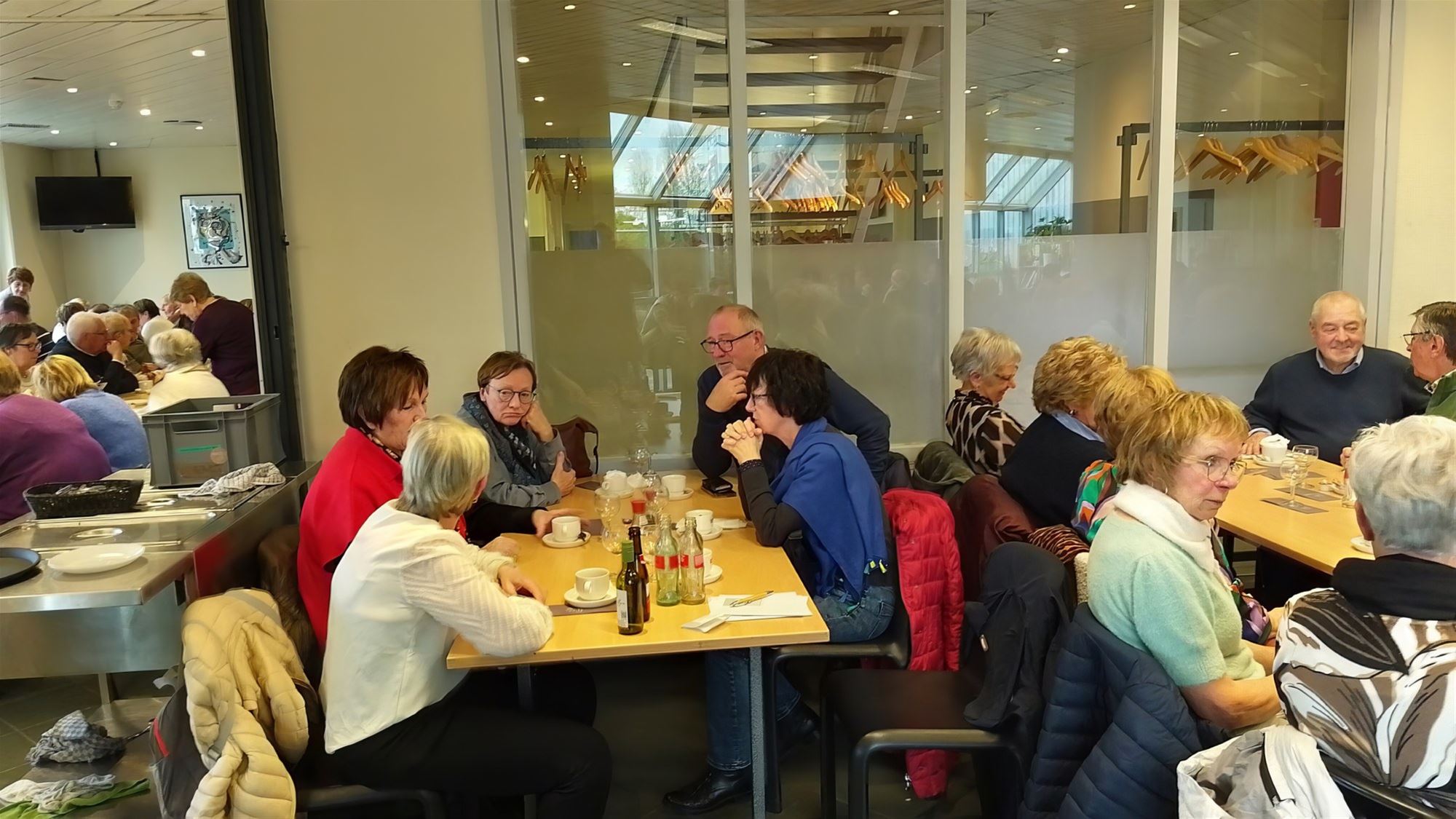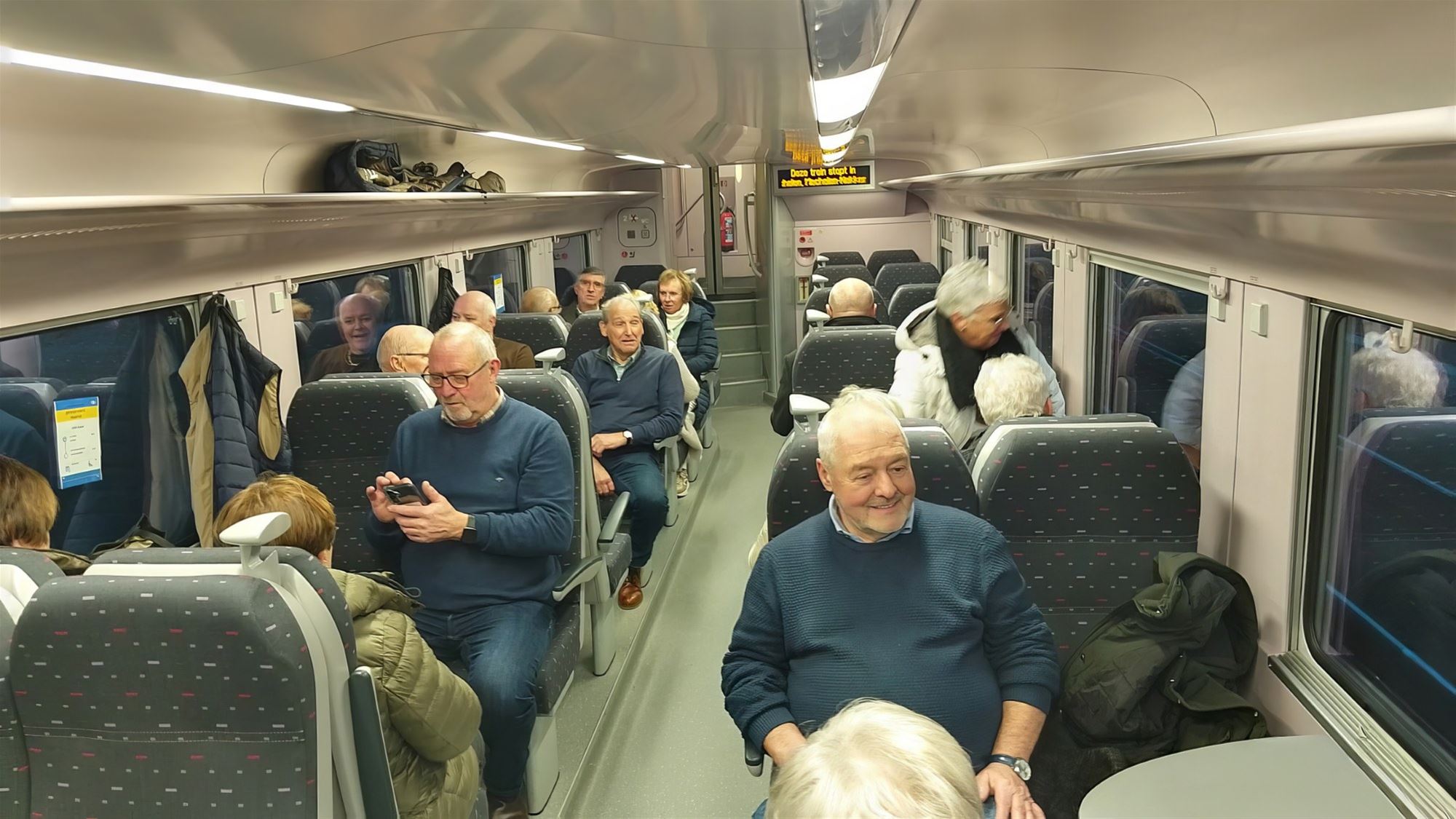Na afloop was er helaas geen tijd meer voor een drankje, maar de gezellige babbels onderweg naar huis – in wagons die speciaal voor de groep gereserveerd waren – maakten veel goed.
