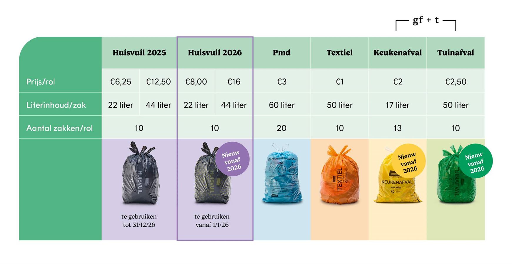 De nieuwe gele en groene zakken maken deel uit van de standaard dienstverlening. Meer afval wordt gescheiden, wat goed is voor het milieu én voor de portemonnee.