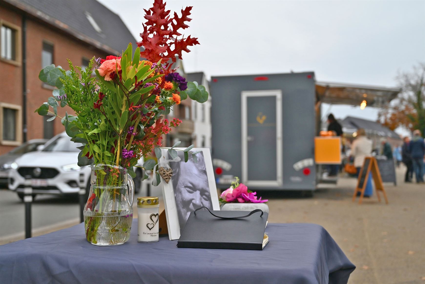 Bloemenhandel André en Ine Koene. Met hun verse bloemen brachten André en Ine elke week kleur en warmte naar de Ter Rivierenwal. Zijn vaste plaats bleef vandaag leeg en was ingericht als rouwstand. Bezoekers konden er een boodschap achterlaten voor Ine en haar zonen.