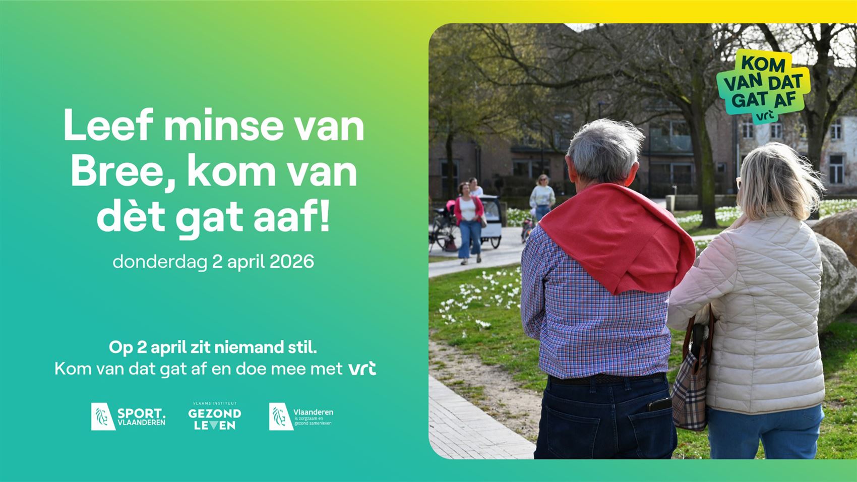 Kom van dat gat af’. Met deze actie willen VRT NWS, Sport Vlaanderen, Gezond Leven en het Departement Zorg iedereen aanmoedigen om wat minder stil te zitten en wat meer te bewegen.