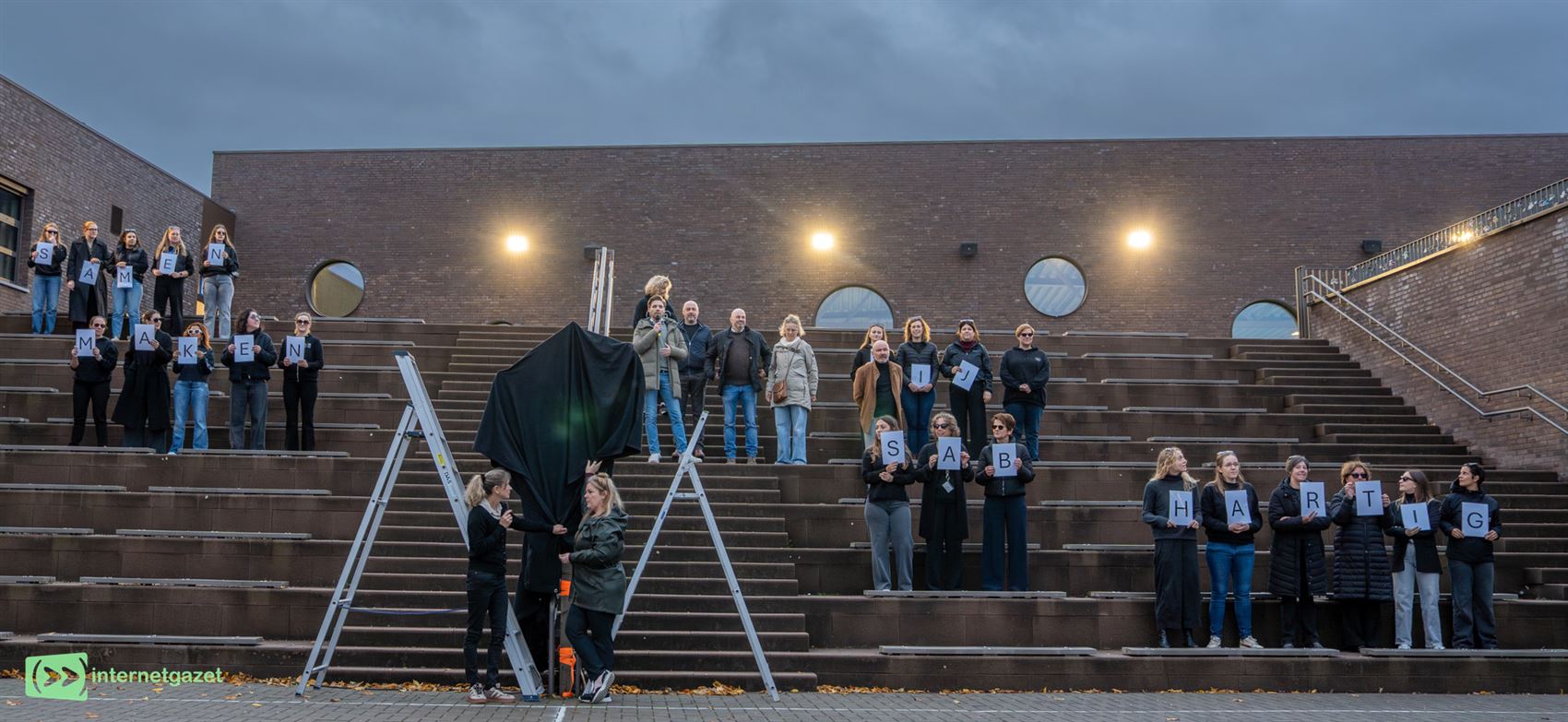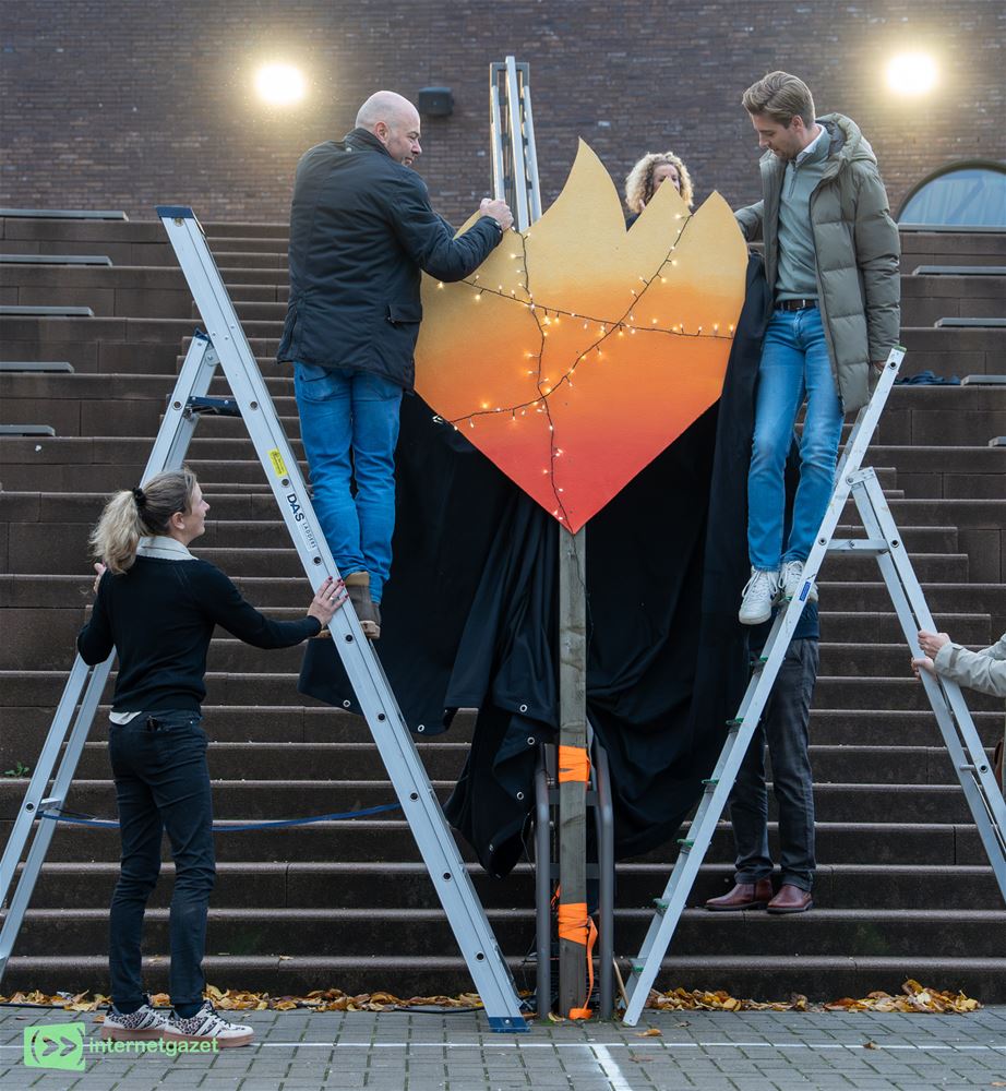 de onthulling van een grote vlam op de speelplaats. Die vlam, hét symbool van warmte en verbondenheid, zal de komende weken het kloppend hart van de school vormen.