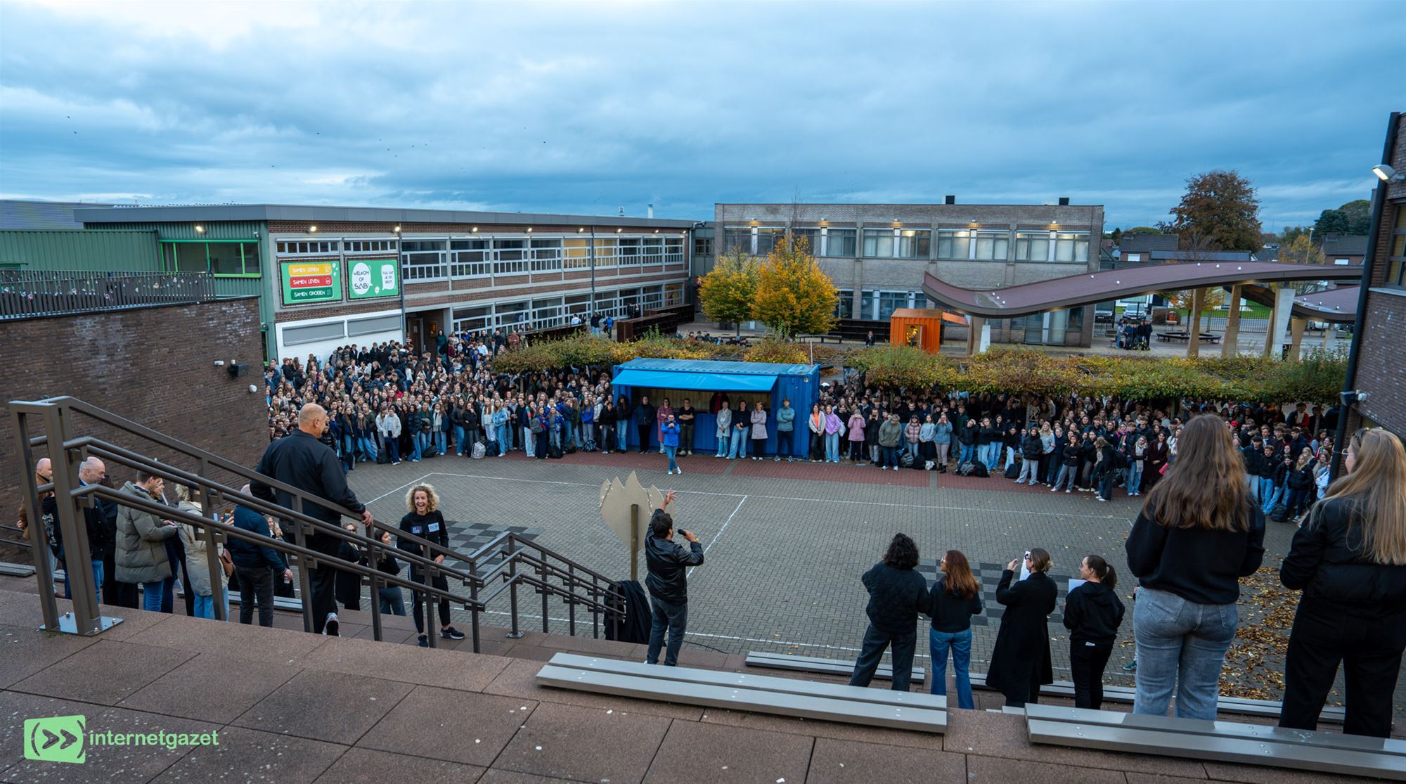 “Ik ken het hier bijna niet meer terug", begon Sietse. "Maar wat ik me nog goed herinner is dat het een warme school was. En als ik zeg warm in het najaar en een beetje vooruitkijk naar de kerstperiode, dan denk ik dat De Warmste Week heel kort bij komt. Vandaag onthullen we hier op SAB het project dat jullie, leerlingen en leerkrachten, zullen maken voor De Warmste Week in Genk eind december. De komende twee maanden gaan jullie ervoor zorgen dat SAB daar als de warmste school van Vlaanderen zal staan. En ik heb het volste vertrouwen dat jullie dat gaat lukken.”