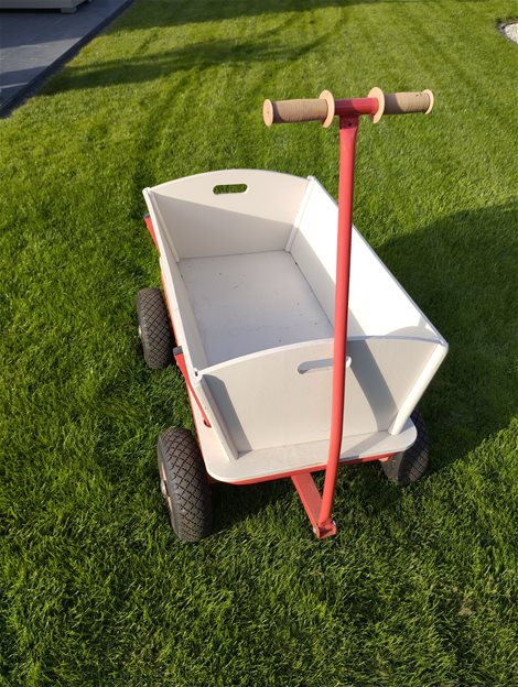 Houten bolderkar in zeer goede staat. Het hout is recent nog volledig opnieuw gelakt.