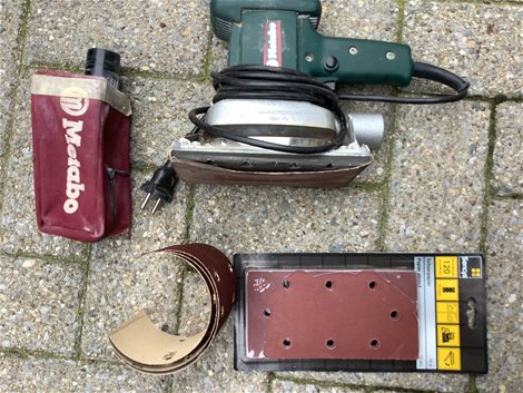 Te koop schuurmachine merk metabo en enkele bladen schuurpapierpier .
