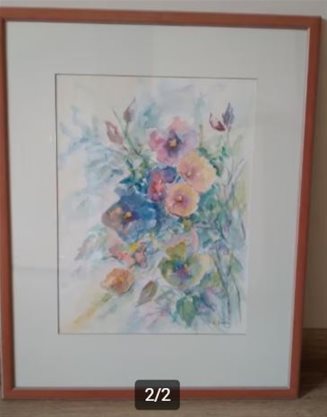 Mooi aquarel bloemen in lijst met passe-partout achter glas. 57 cm breed en 70 cm hoog. In perfect staat.