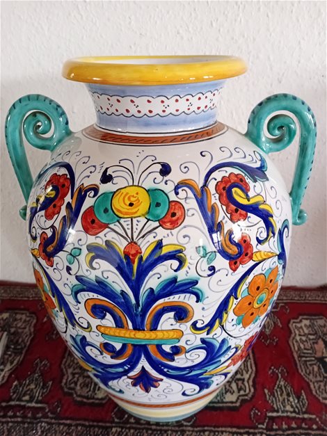 Handgeschilderde keramische vaas uit Deruta Italie, bekend om zijn majolica-keramiek. (Met stempel)