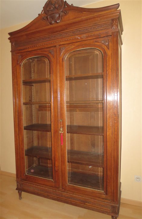 Zeer mooie eiken boekenkast met nog origineel geslepen glas. In uitstekende staat. Vraagprijs is: 600 €