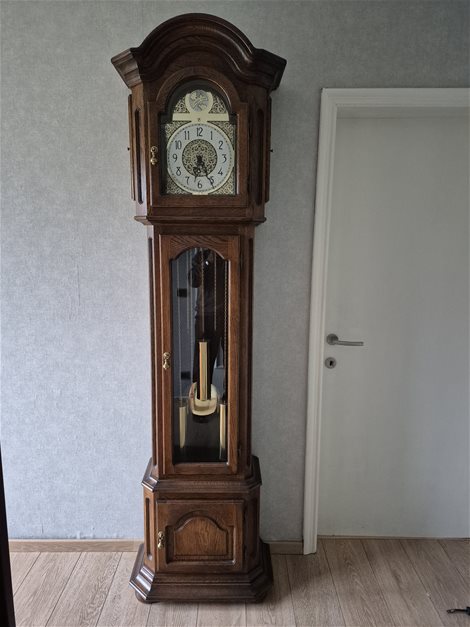 Antieke staande klok in uitstekende staat. Nooit gebruikt en werkt perfect. Een echte blikvanger voor liefhebbers van antiek!