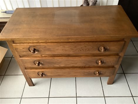 Ladekast (commode ) met spiegel kast heeft drie laden ,spiegel is apart op te hangen moet weg wegens verhuis , prijs 30 euro voor de twee .