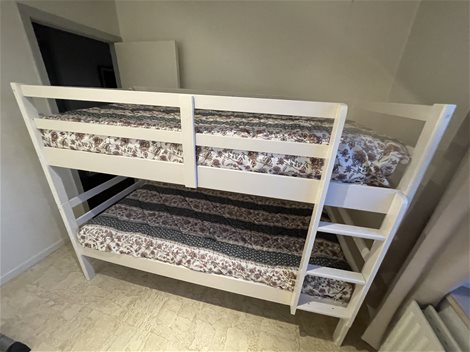 Stapelbed met ladder en lattenbodem en iclsief matras.Matrassen zijn zo goed als nieuw.Stapelbed is demonteerbaar tot 2 enkelvoudige bedden van 80 x 200 cm
