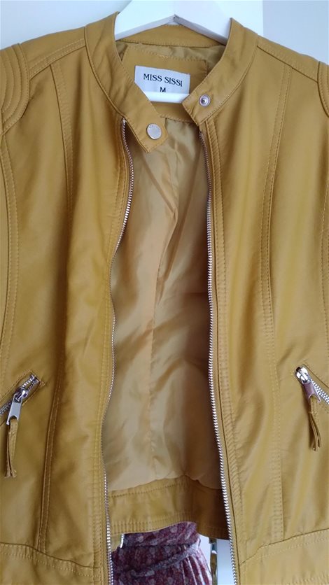 Okergeel en oud roze lederlook damesjasjes, maat M, als nieuw, slechts een paar keer gedragen. € 12,50 per stuk.