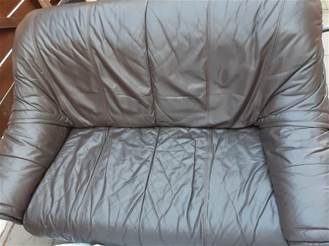 donkerbruine, ledere 2-persoonszetel, heeft gebruikssporen maar ziet er nog best goed uit