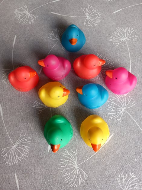 Aangeboden : 9 gebruikte gekleurde eendjes.