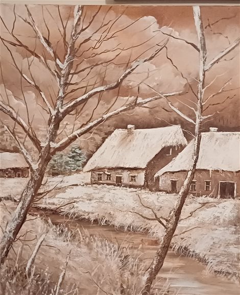 Schilderij in olieverf op doek. Sneeuwlandschap. Nieuw werk. 50 cm hoog x 40 cm = 130 euro. 40 cm hoog x 30 cm = 100 euro.