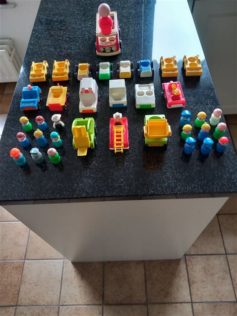 Aangeboden : 18 voertuigen en 19 poppetjes , van Fischer-Price. Verschillende kleuren en grote. Zie ook mijn andere zoekertjes
