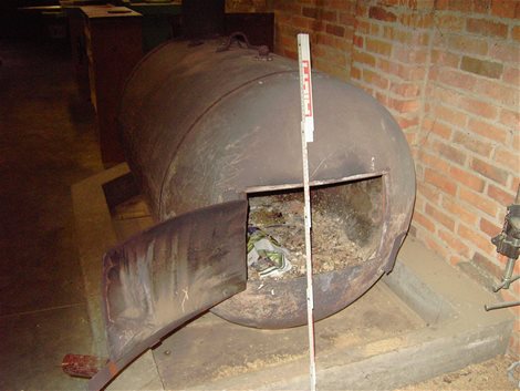 grote houtstoof voor werkhuis diameter 60cm lengte 120cm inhoud 500l wanddikte 5mm vuldeur 40 bij 30cm