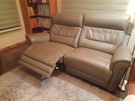 Dubbele elektrische relaxzetel Taupe kleur.echt leder. In goede staat .