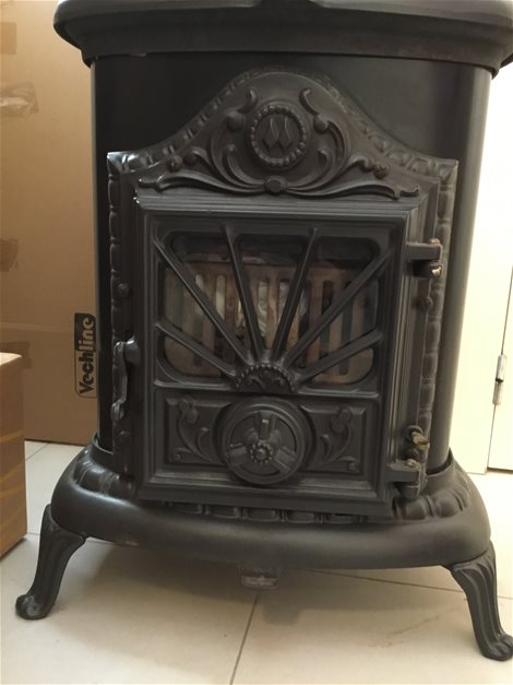 Allesbrander kachel: hout en kolen. In goede staat, vrijstaand, eventueel met inox geïsoleerde buis en toebehoren.