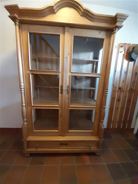 Grenen vitrine kast 210 hoog 120 breed 50 diep 2deurs en 1 lade