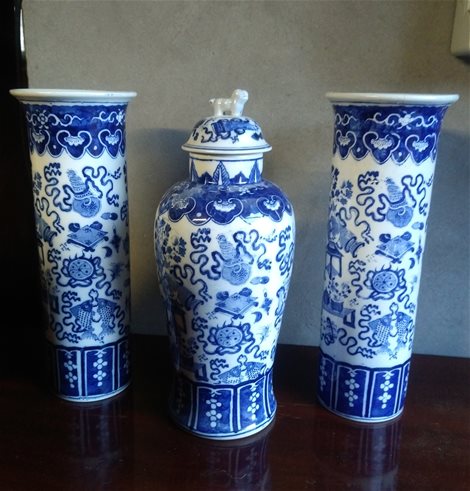 Drie vazen Delfts Blauw (ongeveer 30 cm hoog)