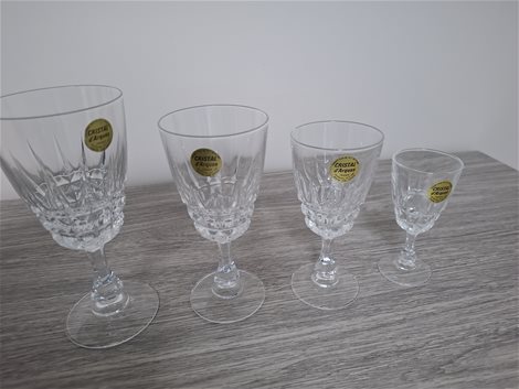Cristal d'Arques glazen te koop. 6 waterglazen 6witte ,6rodewijnglazen,6borrelglaasjes.In heel goede staat