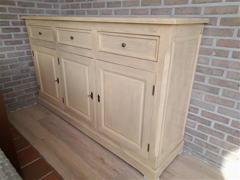 comodekast in kersenhout binnenkant buitenkant met krijtverf en daarna vernist 180 L 106 H 50 D 3 laden en 3 deuren