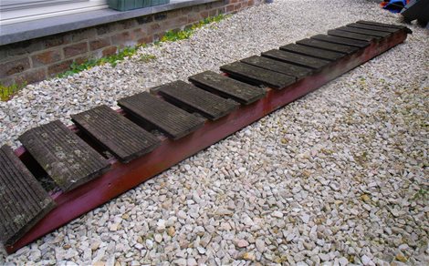 Stevig bruggetje van 4m20 voor over een beek of in de kinder- of geiten speeltuin. Gratis afhalen Kievitstraat 40 Neerpelt!