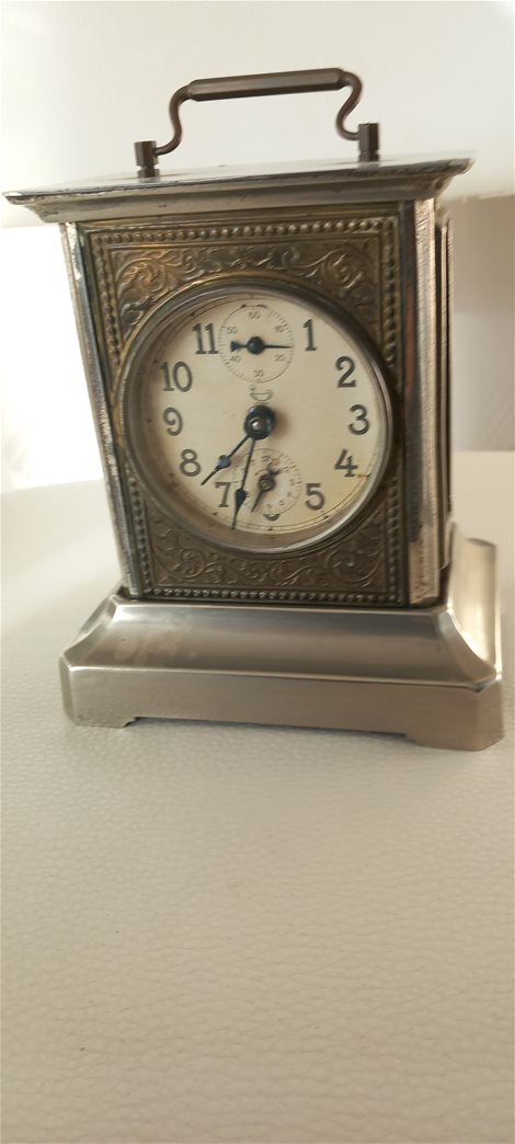 Een vermoedelijk 100 jaar oude Junghans reiswekker met bijhorende opwindsleutel