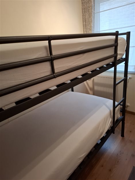 Mooi stapelbed te koop wegens verhuis, in perfecte staat. Met 2 pocketvering matrassen 90cm op 2m,dikte 24 cm.