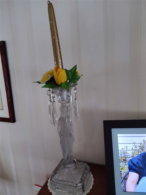 Kandelaar met kaars. Hoogte = 30 cm (excl. kaars) Af te halen in Lommel