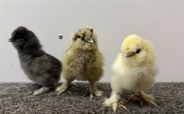 Mooie kuikentjes Zijdehoen, verschillende kleuren. Moeten nog onder warmtelamp.