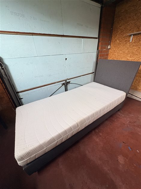 1 persoonsbed muisgrijs van 90/200cm met achterwand inclusief een degelijke matras. Niet veel gebruikt, moet weg wegens verhuizing…