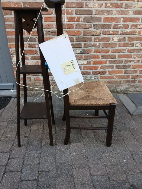 Antieke kerkstoel te koop €3,00 Antieke piejedestal te koop €3,00